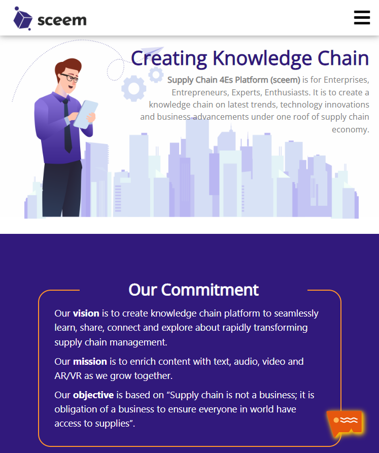 Supply Chain 4Es Platform (sceem) is for Enterprises, Entrepreneurs, Experts, Enthusiasts. It is to create a knowledge chain on latest trends, technology innovations and business advancements under one roof.